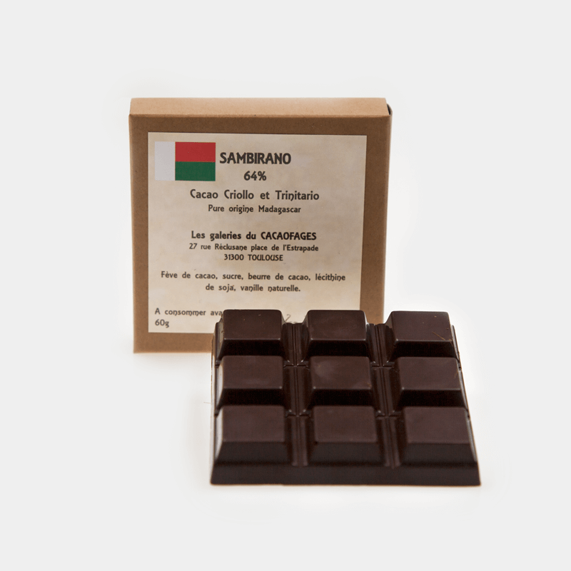 Variété “Criollo et Trinitario”, origine Madagascar, 64% de cacao.