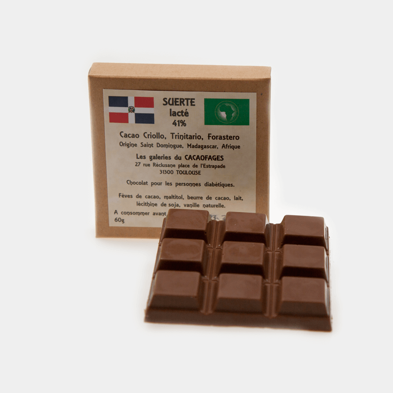 Variété « Criollo, Trinitario, Forastero », origine St Domingue, Madagascar, Afrique 41% de cacao.