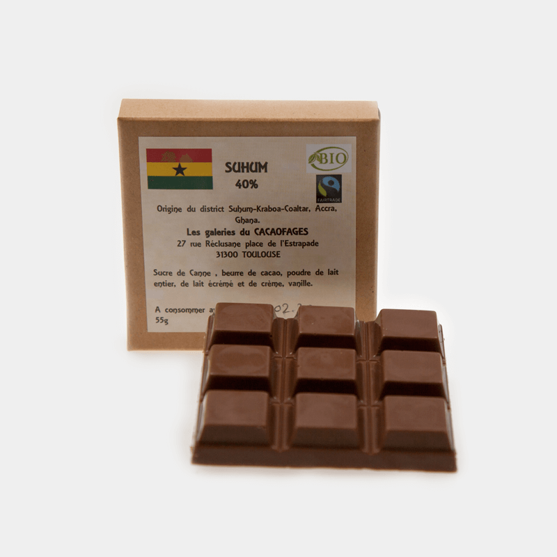 Cacao de domaine, origine Ghana, district Suhum-Kraoba-Coaltar, 40% de cacao BIO.